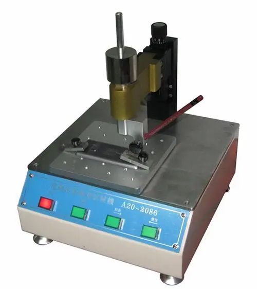 削磨好的鉛筆裝入儀器夾具內(nèi),將試樣待測(cè)面朝上固定在儀器的試樣臺(tái)上。調(diào)節(jié)水平砝碼使鉛筆對(duì)試樣表面負(fù)荷為零,然后加上1±0.05kg的砝碼。讓試樣與鉛筆反向移動(dòng)3mm,移動(dòng)速度約為0.5mm/s。轉(zhuǎn)動(dòng)鉛筆使無損傷的鉛芯邊緣接觸涂層,并變換試驗(yàn)位置,依次犁劃5次,從最硬的鉛筆開始試驗(yàn),5次中若有兩次能犁破涂層則換用較軟的鉛筆一支,直至找出5次中至少有4次不能犁破涂層的鉛筆為止,此鉛筆的硬度即為被測(cè)涂層的鉛筆硬度。用較軟的鉛筆一支,直至找出5次中至少有4次不能犁破涂層的鉛筆為止,此鉛筆的硬度即為被測(cè)涂層的鉛筆硬度。
